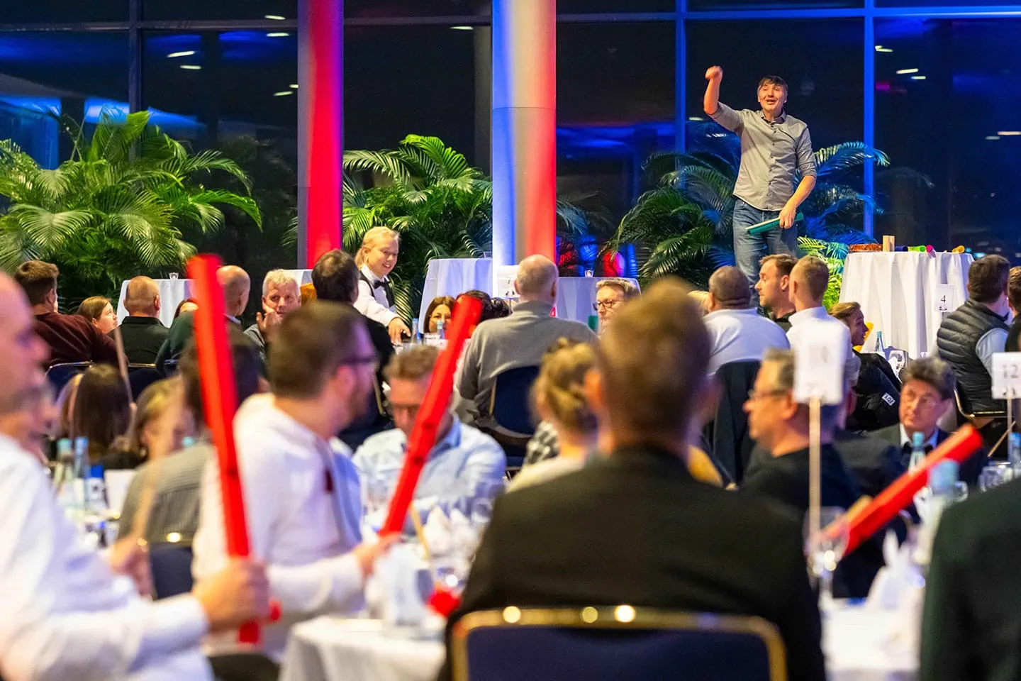 Genau für diesen Moment gibt es unser „inTakt“-Format. Es ist der perfekte Energizer für Ihr Firmenevent, um auch sehr große Gruppen in kürzester Zeit wieder hellwach zu machen und neu zu verbinden.